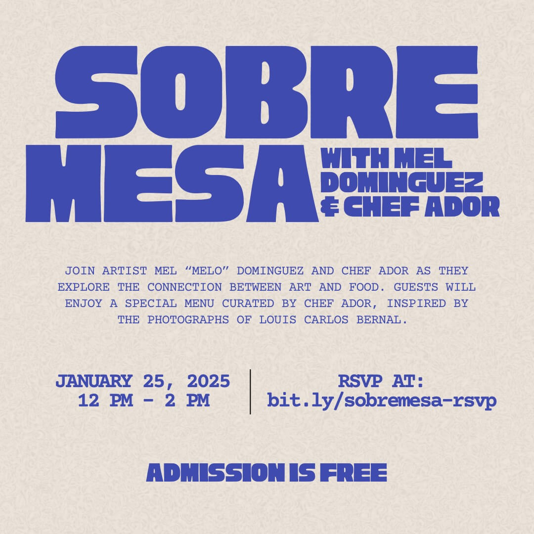 As part of CCP’s year-long “CCP Community Tables” project, our sobremesas combine food and art to build connections and create engaging spaces for community exchange. Inspired by the Spanish and Latin American tradition of sobremesa—where conversations continue after a meal—CCP will host five special sobremesas during Louis Carlos Bernal: Retrospectiva. These events will feature collaborations between a visual artist and a Southern Arizona-based chef, offering a unique interactive experience that blends food, art, and meaningful conversation.