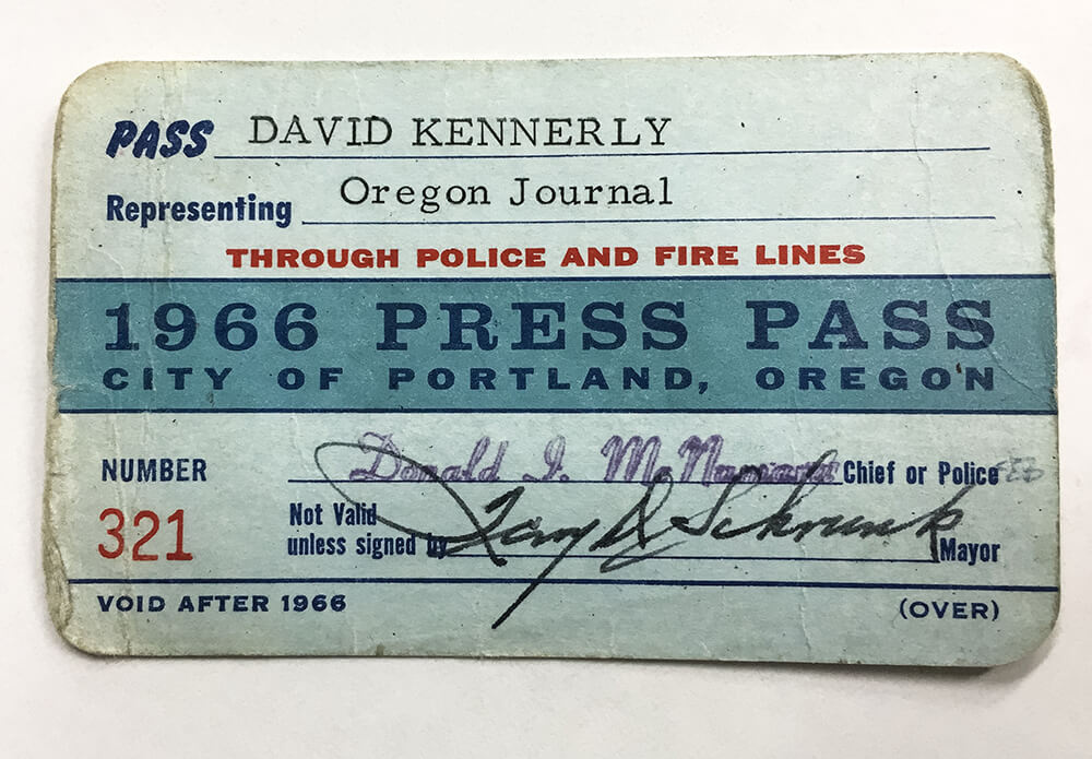 David Hume Kennerly, David Hume Kennerly's Press Pass for the Oregon Journal, 1966