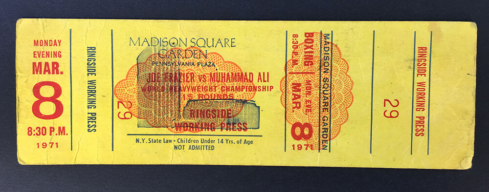 David Hume Kennerly, Ringside Working Press Ticket from Joe Frazier vs Muhammad Ali World Heavyweight Championship fight, March 8, 1971