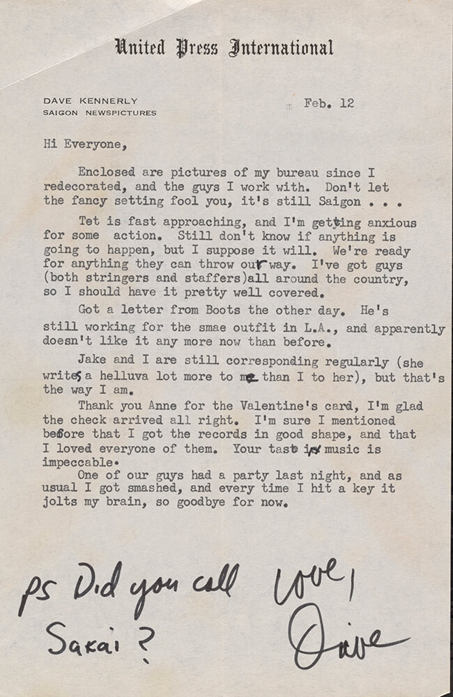Letter from David Hume Kennerly to his parents, February 12, 1972 (image 1 of 2)