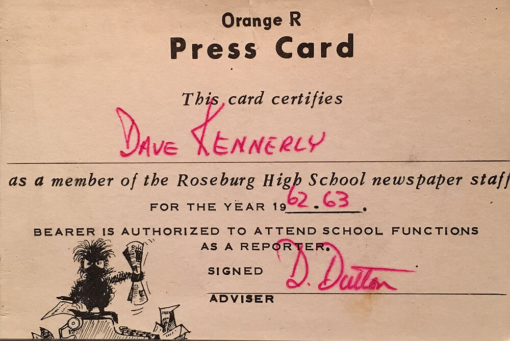 David Hume Kennerly, David Hume Kennerly's Press Pass for the Roseburg High School Newspaper Staff, ca. 1962.