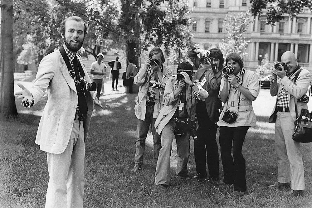 David Burnett, David Hume Kennerly, Photographer, and His Colleagues, White House Lawn, Washington, D.C., 1974