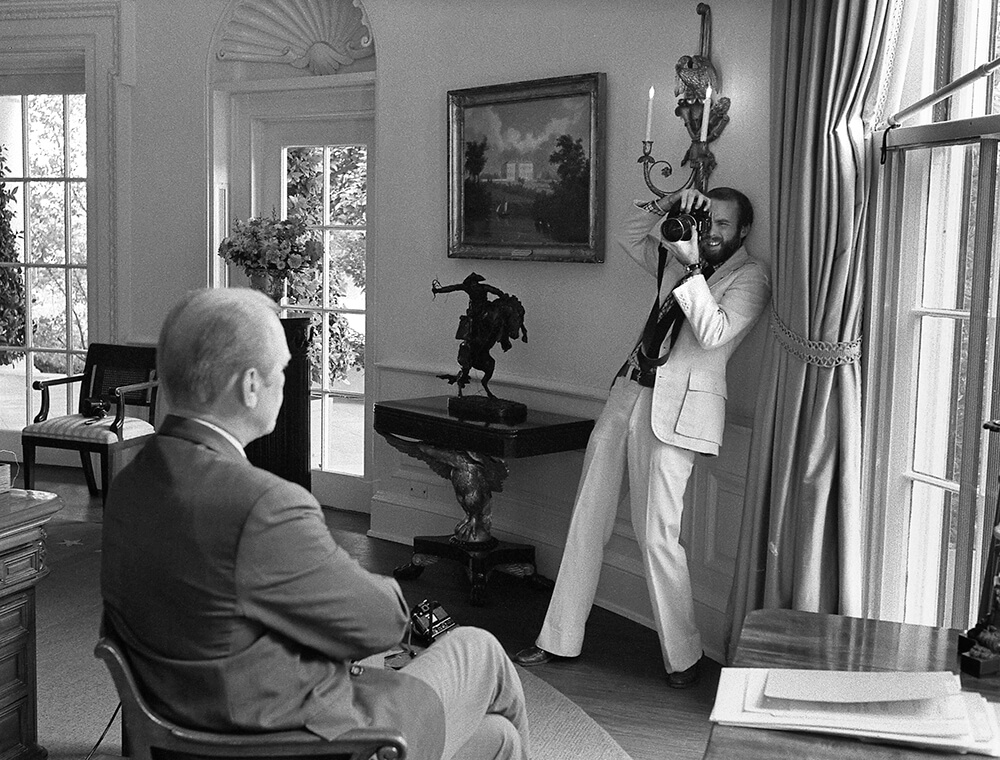 Karl Schumacher, Gerald R. Ford, President, Having His Portrait Taken by David Hume Kennerly in the White House Oval Office, Washington, D.C., 1974
