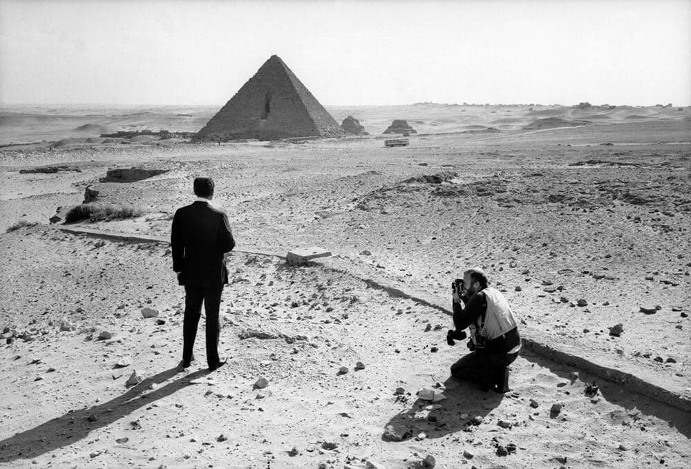 David Burnett, Anwar Sadat, Egyptian President, Having His Photograph Taken by David Hume Kennerly for Time's Man of the Year, Giza Pyramid Complex, Egypt, 1977