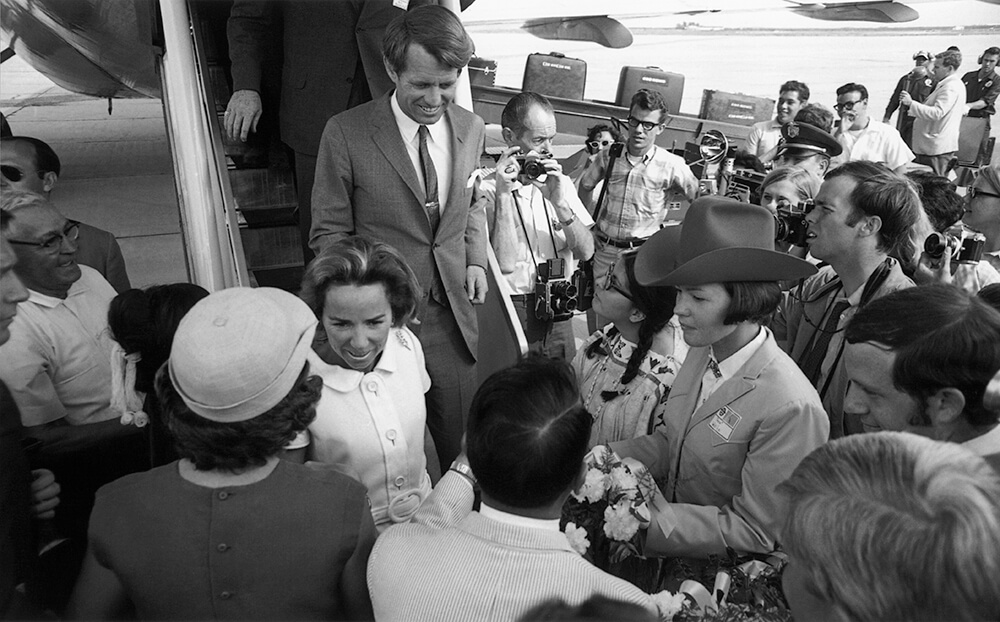 Dave Acton, David Hume Kennerly and Other Members of the Press Photograph Robert F. and Ethel Kennedy, Senator and Wife, Arriving in Tucson, Arizona, 1968.